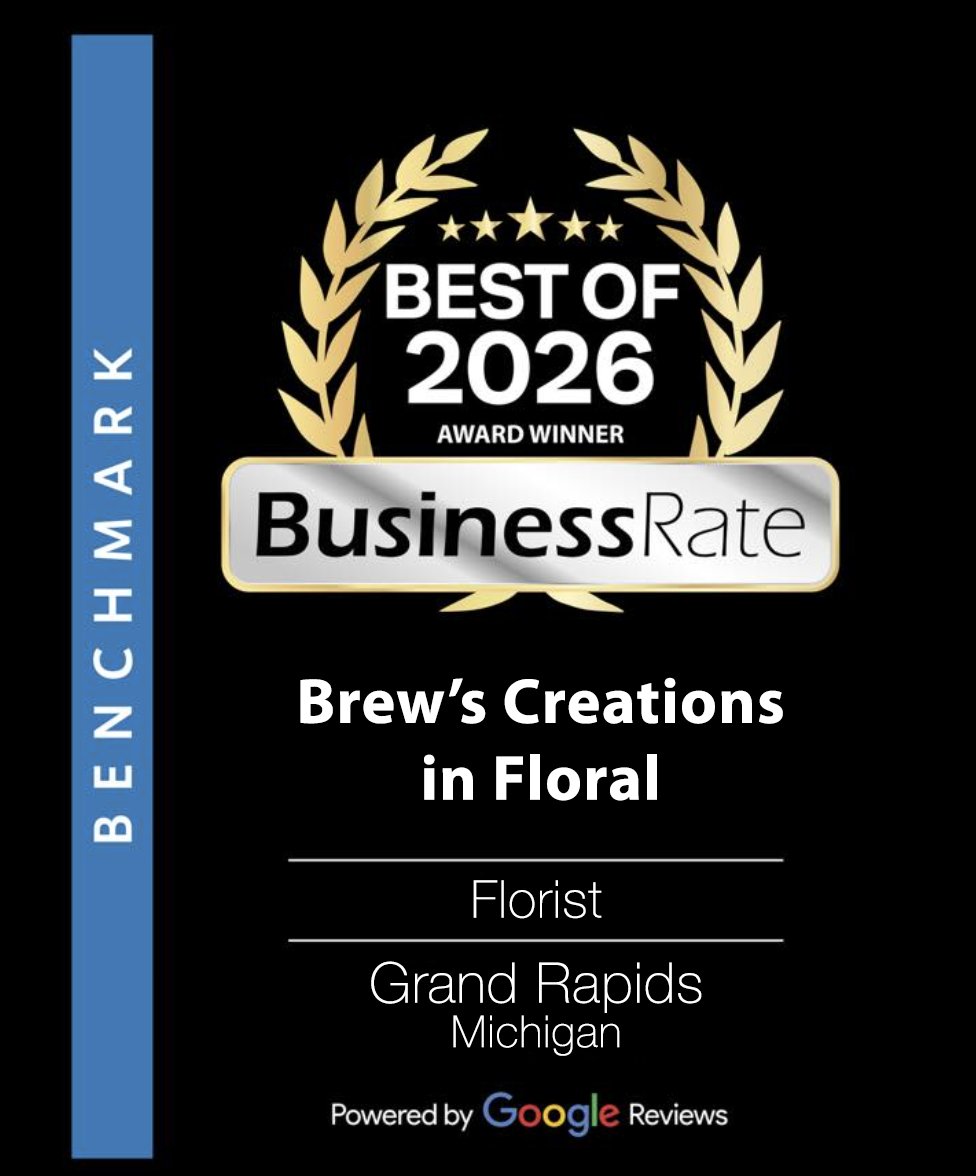 Brew’s Creations has been officially recognized as the BEST in the Florist category - an honor based on verified data from Google Reviews, as analyzed and certified by BusinessRate, which recognizes local leaders in customer satisfaction, brand reputation, and service excellence. Earned by authentic feedback from our customers.